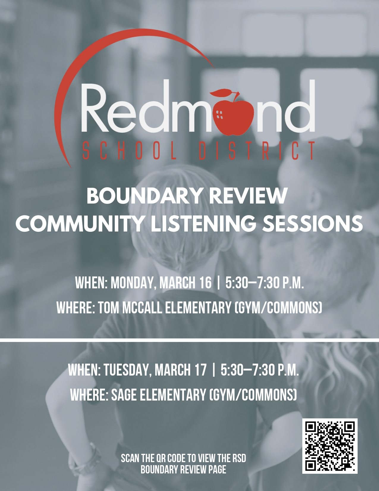 We invite families, staff, and community members to continue the conversation by attending one or both of our upcoming Boundary Review Community Listening Sessions: